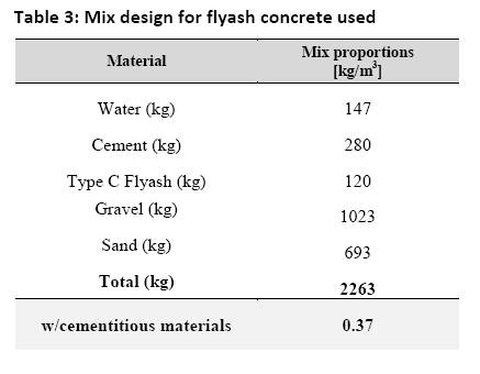 - Table 3: Mix design for flyash concrete used
