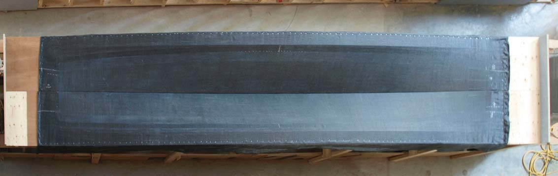 - Fig. 47. Fabric stretched lengthwise in frame for double-curvature lenticular thin-shell vault (C.A.S.T. photo).