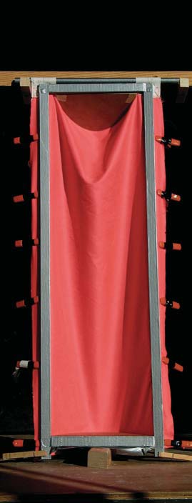 Fig. 42. Hanging sheet of fabric used as mold to produce thin-shell wall panels.